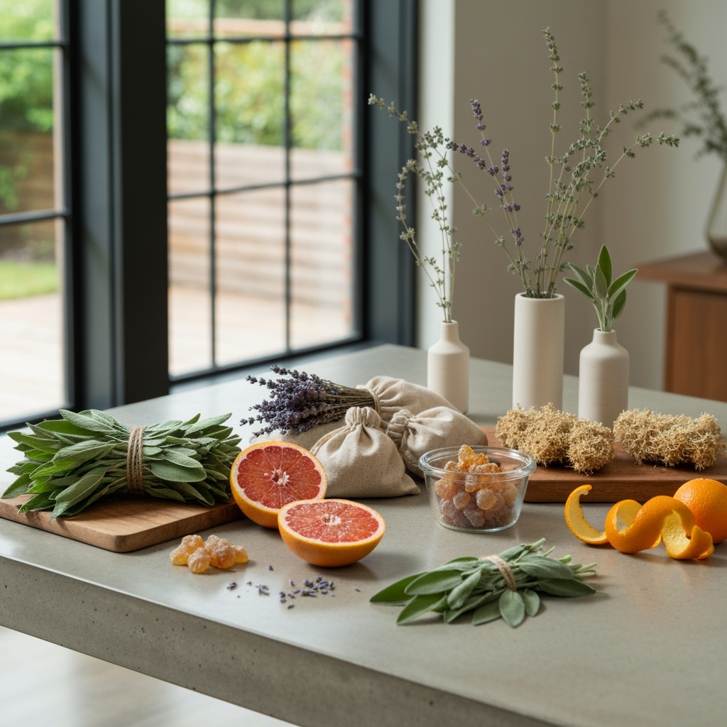 Earthy and modern — sage, grapefruit, and oakmoss with soft lavender and warm amber