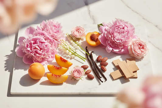 Floral, fruity, and soft — peony and lily of the valley meet peach, rose, and warm vanilla-musk notes