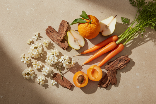 Fresh and grounded — osmanthus and apricot with a hint of carrot over smooth cedarwood