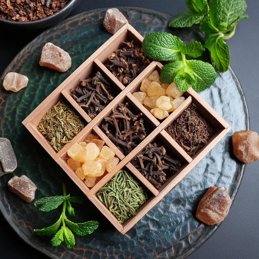 Warm and festive — smoky oud and musk balanced with sweet spearmint and rich woody spices